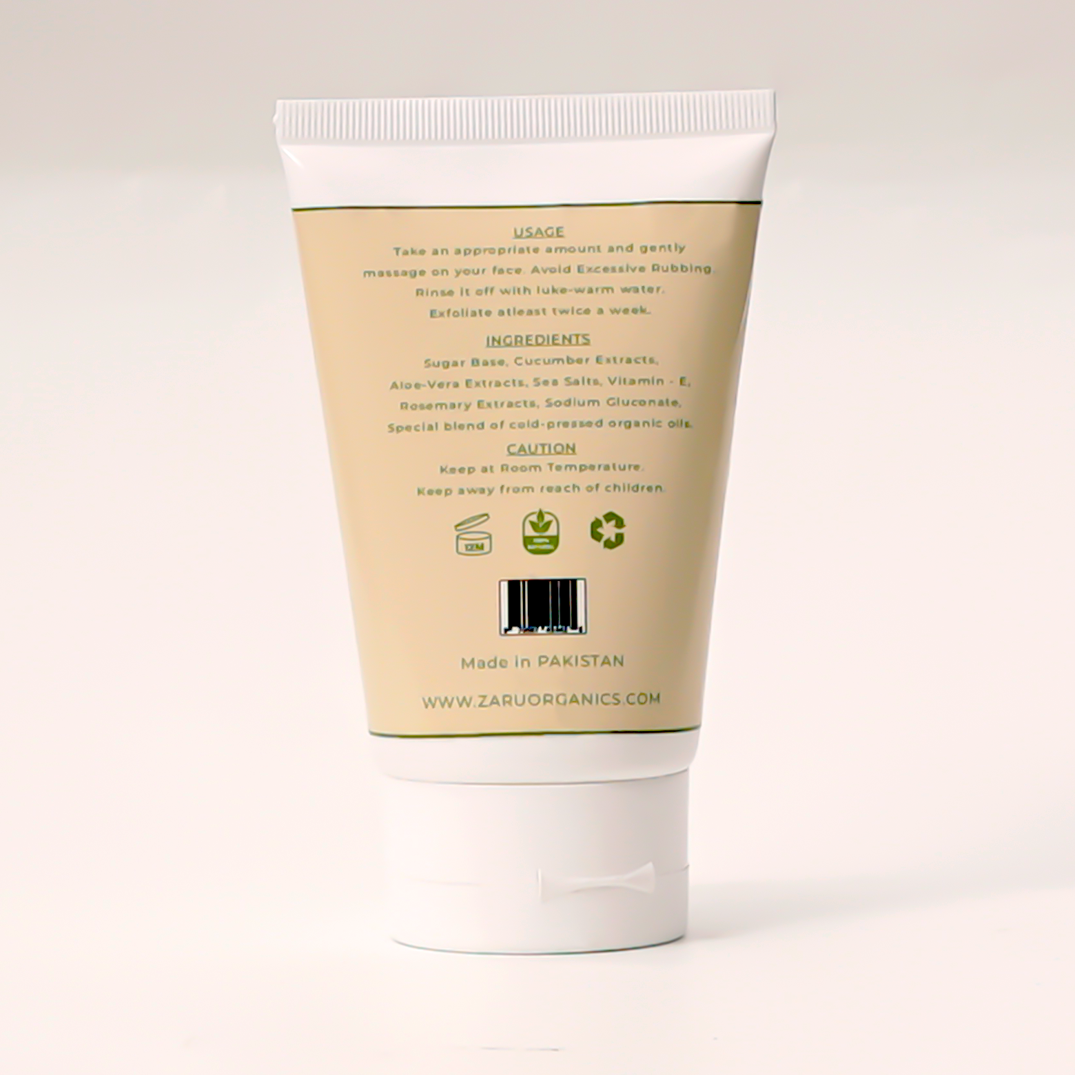 Zaru Organics Cucumber Scrub is a luxurious blend of exfoliating agents and nourishing components, perfectly balanced to provide you with a gentle yet effective exfoliation. The scrubbing particles, combined with the cucumber-infused formula, work together to remove dead skin cells, unclog pores, and reveal a radiant complexion. Enriched with Natural extracts and essential oils, our Cucumber Scrub leaves your skin feeling smooth, hydrated, and refreshed.