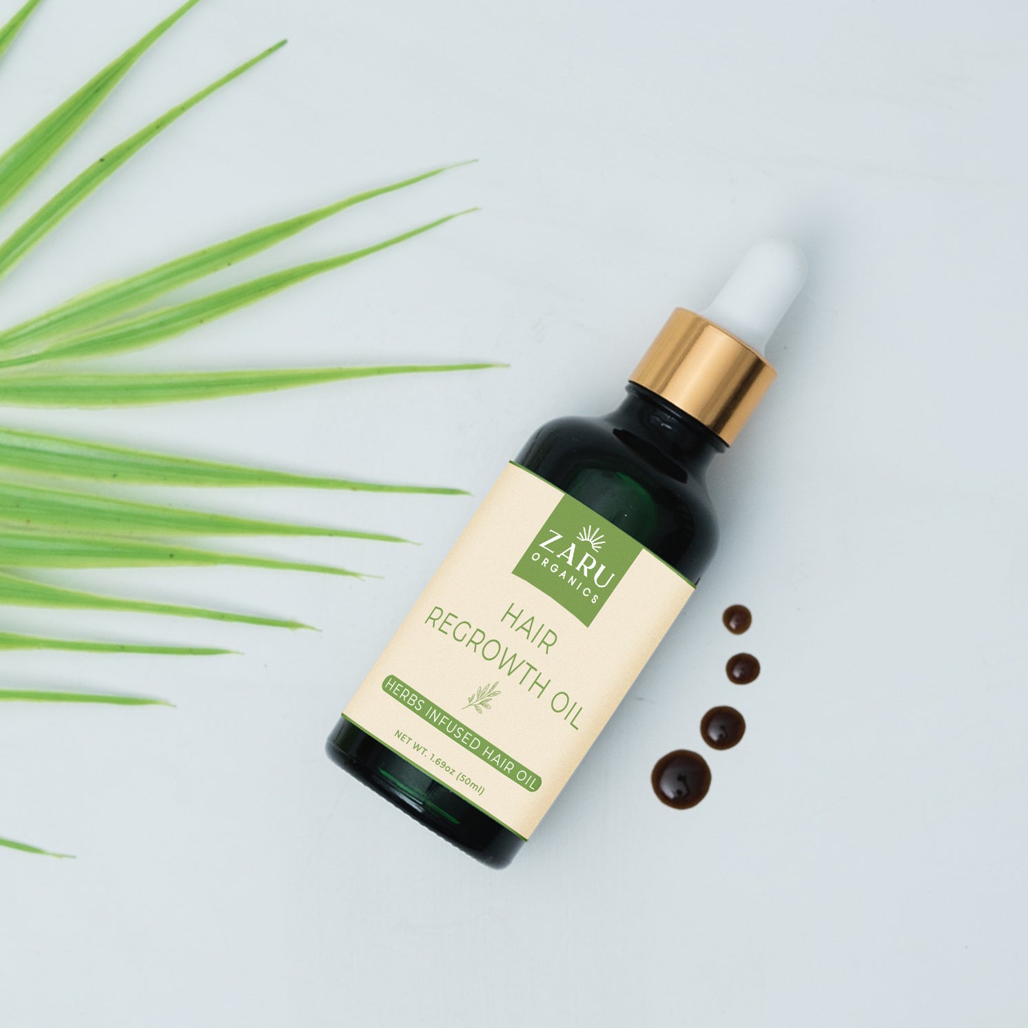 Zaru Organics Hair Regrowth oil carries many beneficial organic oils like Black seed oil, Mustard oil, Onion oil, Indian gooseberry, Acacia concinna, and Hibiscus, including others that make this oil perfectly suitable and ideal diet for hair.
